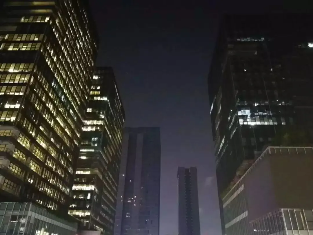 丽丽提供的自己拍摄的公司照片,周三晚上十一点灯火通明的工作楼