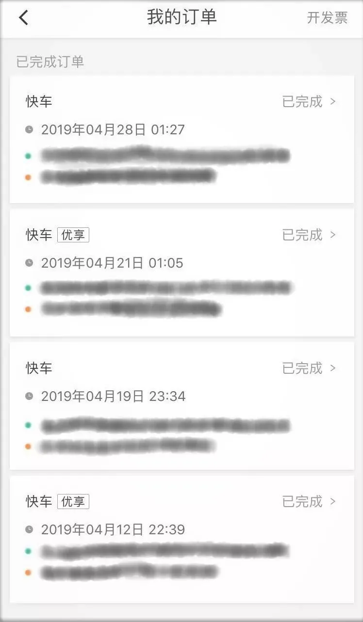 F酱提供的滴滴打车报销截图,打车时间大多在深夜。苦中作乐的F酱在朋友圈写道:ACG宅入了游戏业,最火的moba游戏没白金,最热的吃鸡游戏没白金,最想玩的ps4游戏没白金,但因为加班打车,滴滴出行白金了(ㅍ_ㅍ)…”