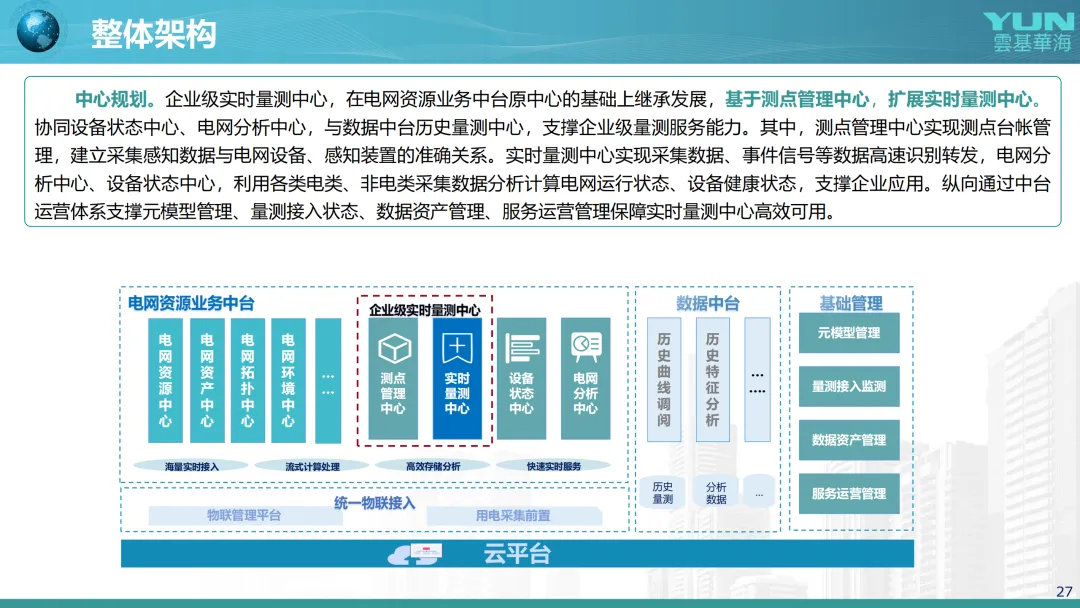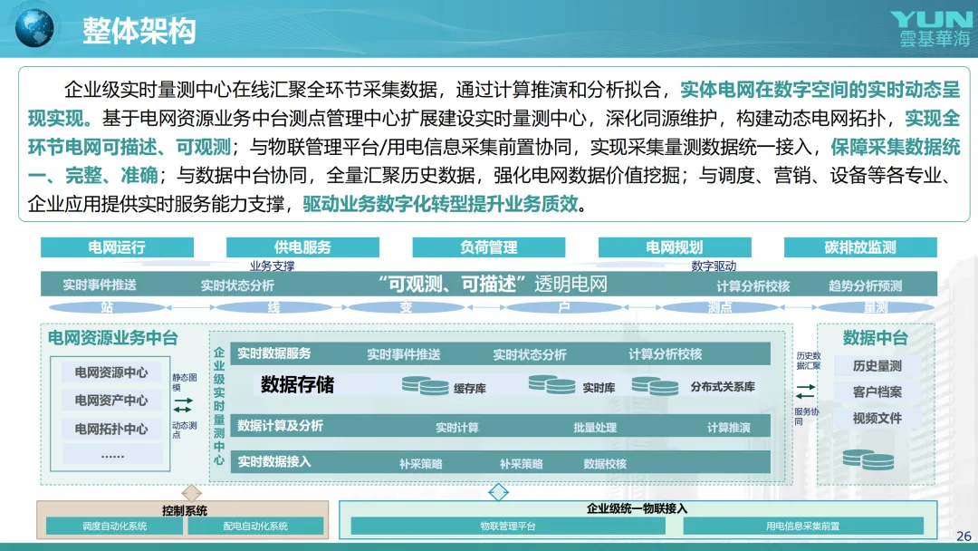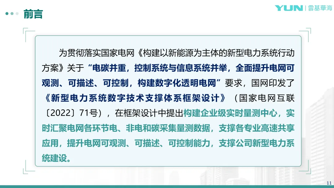 本方案以“双碳”目标与国家新型电力系统战略为背景,系统构建了企业级实时量测中心为核心的数字化运营整体解决方案。方案直面高比例新能源接入带来的可观、可测、可控挑战,旨在通过数据融合与智能分析,提升电网安全、可靠与绿色运行水平。方案核心围绕企业级实时量测中心展开,通过统一物联接入标准、整合多源采集数据,并依托云原生数据湖与流批一体计算架构,实现电力系统各环节电类与非电类数据的实时汇聚、高效处理与高速共享。该中心与电网资源业务中台、数据中台及各专业系统协同,构建了“采集-接入-治理-服务-应用”的全流程数据运营体系,支持动态拓扑、实时监测与智能研判。在应用层面,方案聚焦分布式光伏平衡预测、配网实时故障研判、设备状态监测等典型场景,并拓展至碳流监测、风光储数字孪生、负荷精准管理等示范应用,全面提升电网透明度、故障响应速度与运维智能化水平。通过构建数据链路监测、质量核查与统一授时保障机制,确保数据运营的可靠性与时效性。方案最终致力于形成“技术+产品+方案”的一体化服务能力,推动电网数字化转型,构建数字孪生电网与智慧能源生态,为新型电力系统建设提供坚实的数据底座与运营支撑,助力企业实现安全、高效、低碳的可持续发展。