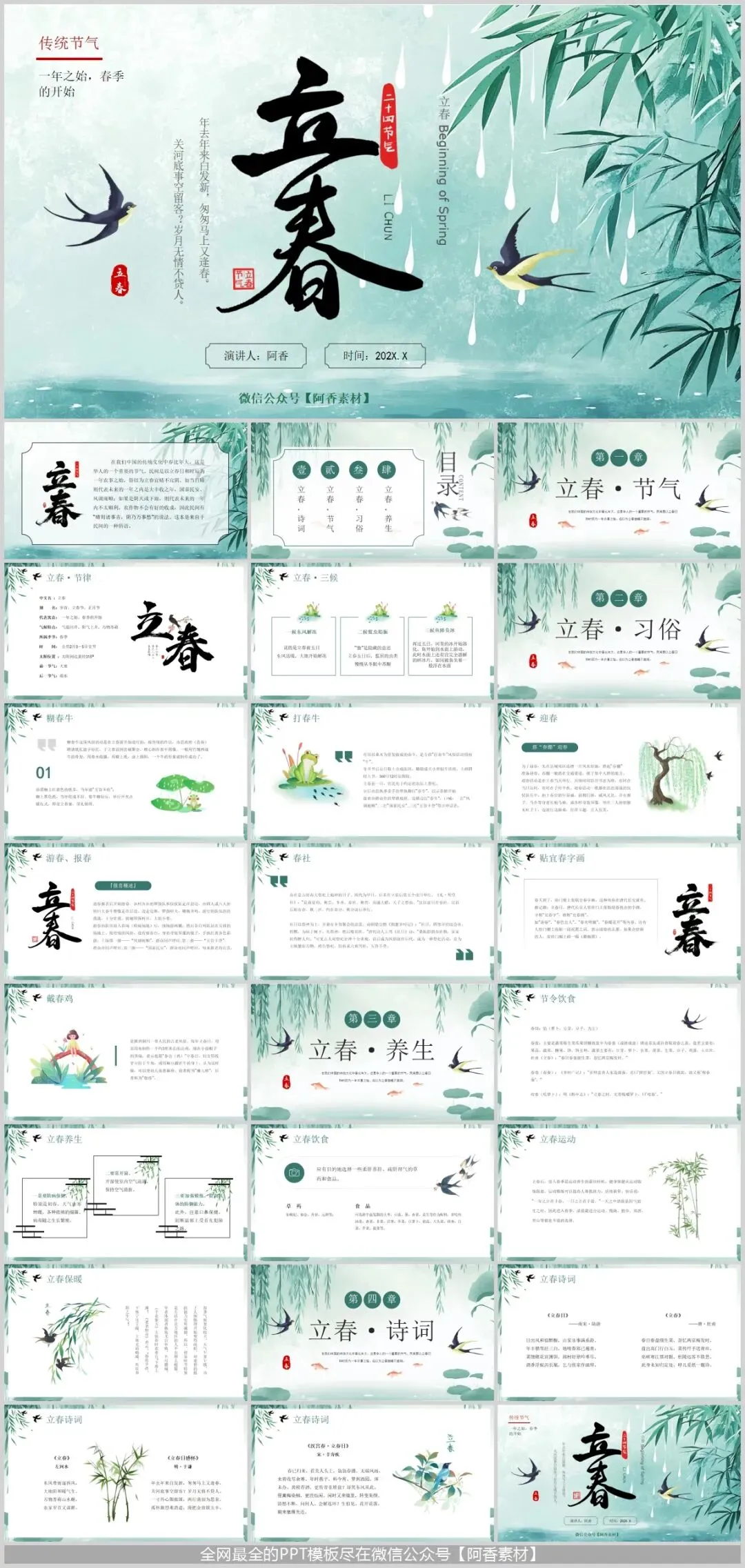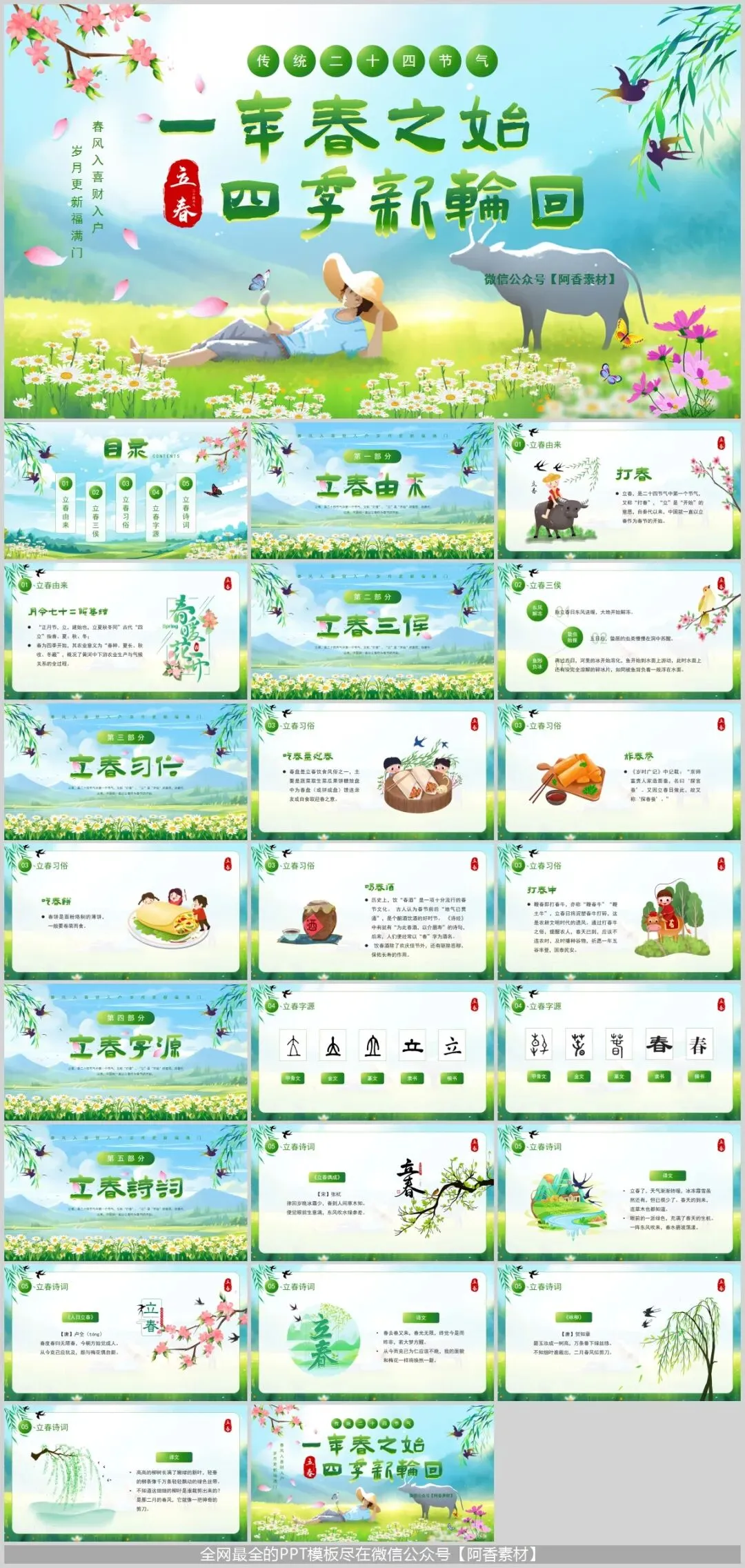 阿香给大家分享一期立春主题PPT模板,一共有8套。不仅需要融合传统节气文化元素,还需通过精美的视觉设计传递春日气息。本文将为您精选多款立春唯美PPT模板,从简约清新到国潮古风,助您打造令人印象深刻的立春主题演示。