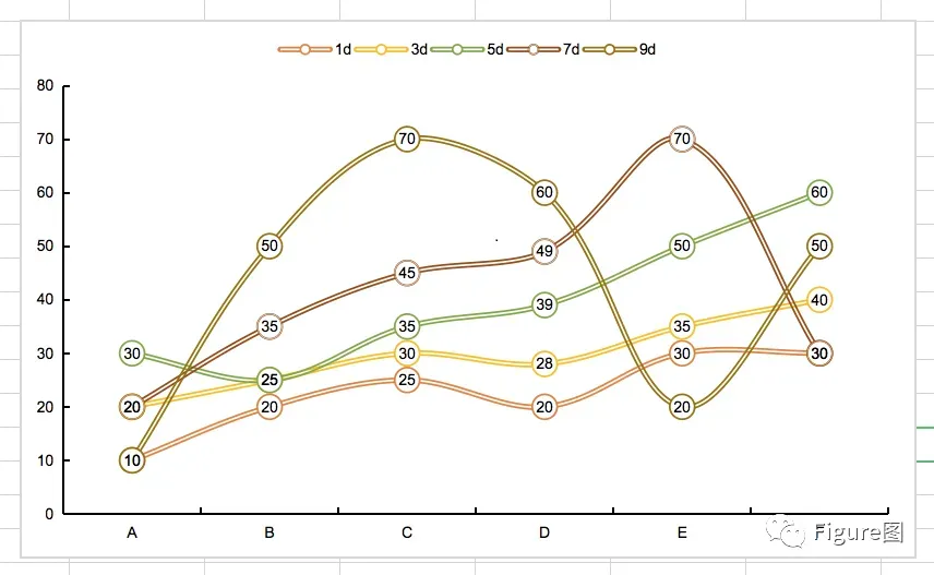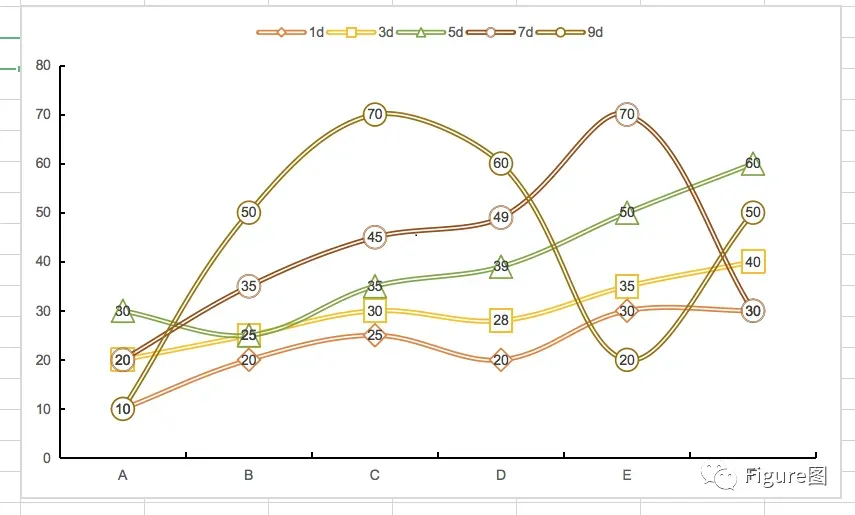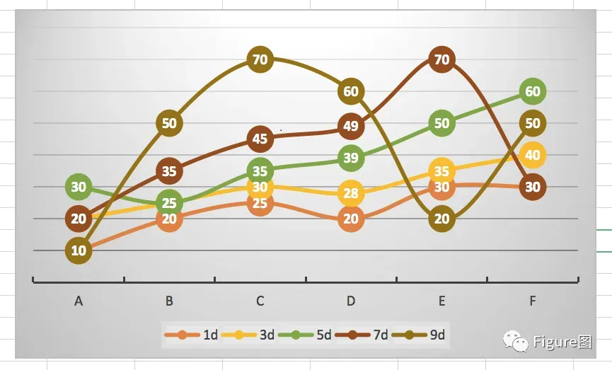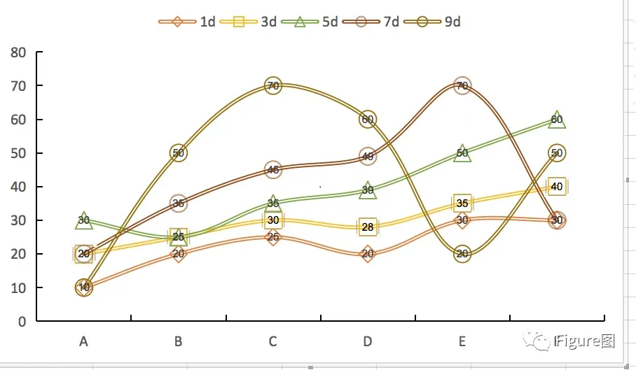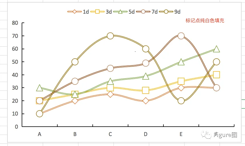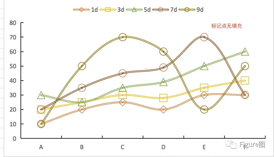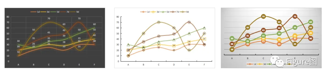 折线图我们在上一篇刚介绍了,今天来讲讲如何让它向上面的折线图一样带上不同类型的数据标记,同时使整体看起来很平滑。