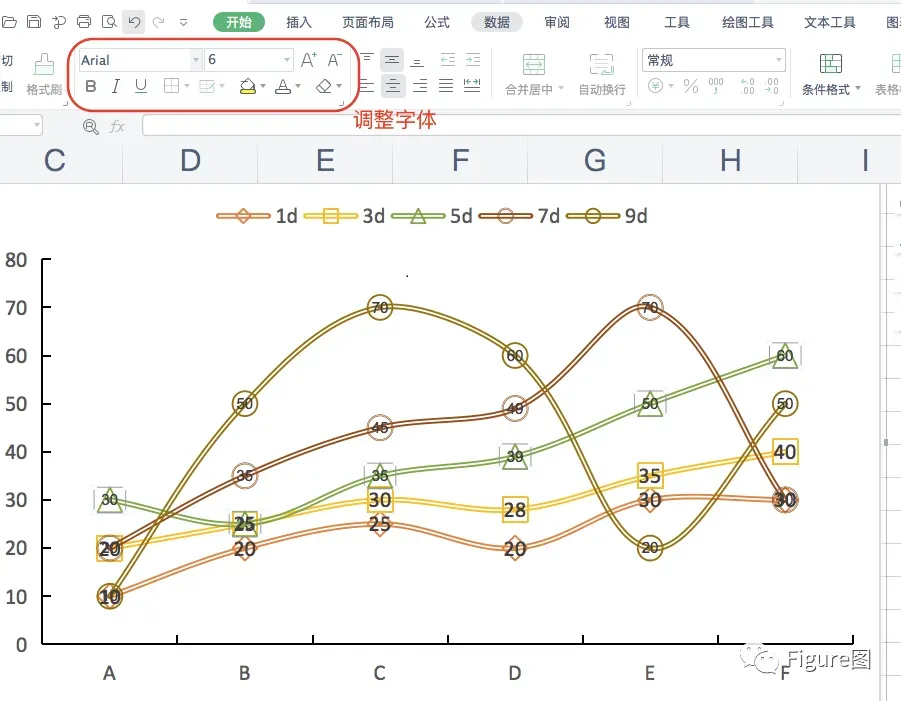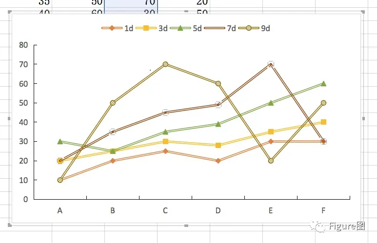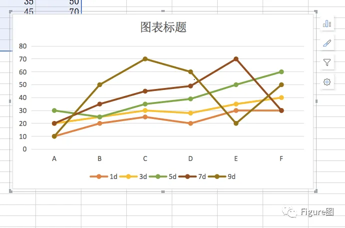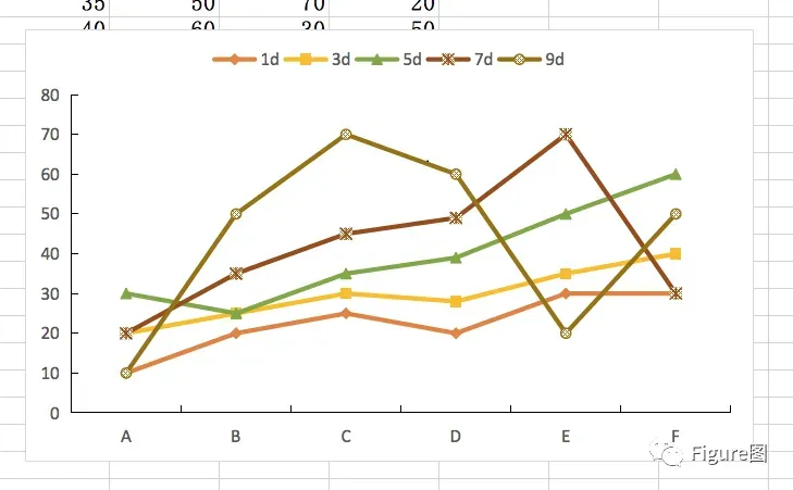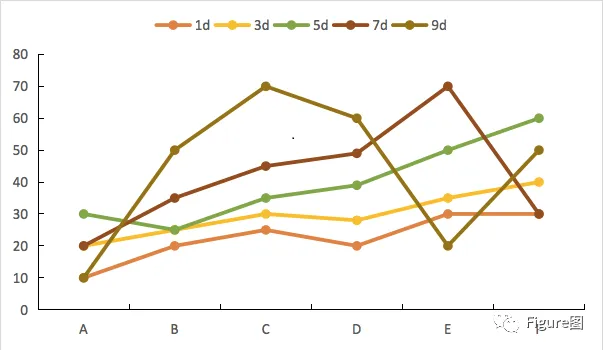 4. 通过调整坐标轴格式、图注的位置等如下所示,这是最基本的带数据标记的折线图。