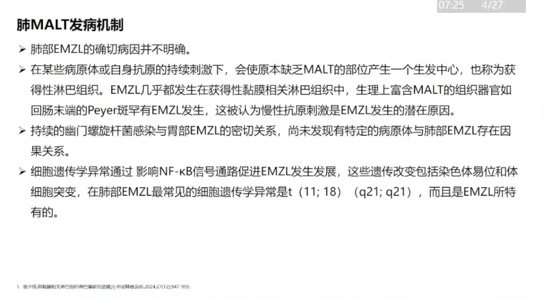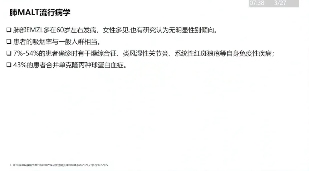 俞文娟:肺黏膜相关淋巴组织淋巴瘤研究进展(27P)