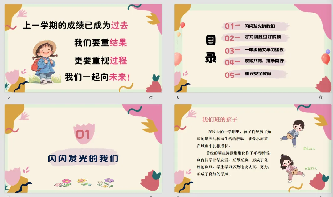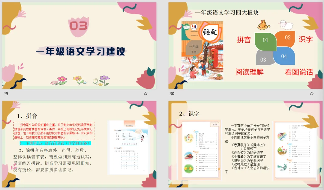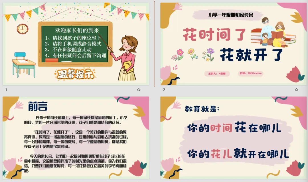 【家长会PPT】一年级语文下册学期初家长会精美成品课件《花时间了,花就开了》+发言稿+暖场视频+问卷调查,文末附免费下载链接