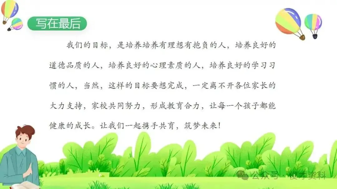 【通用】期末家长会ppt: 家校凝心聚力,携手筑梦未来.(含发言稿)