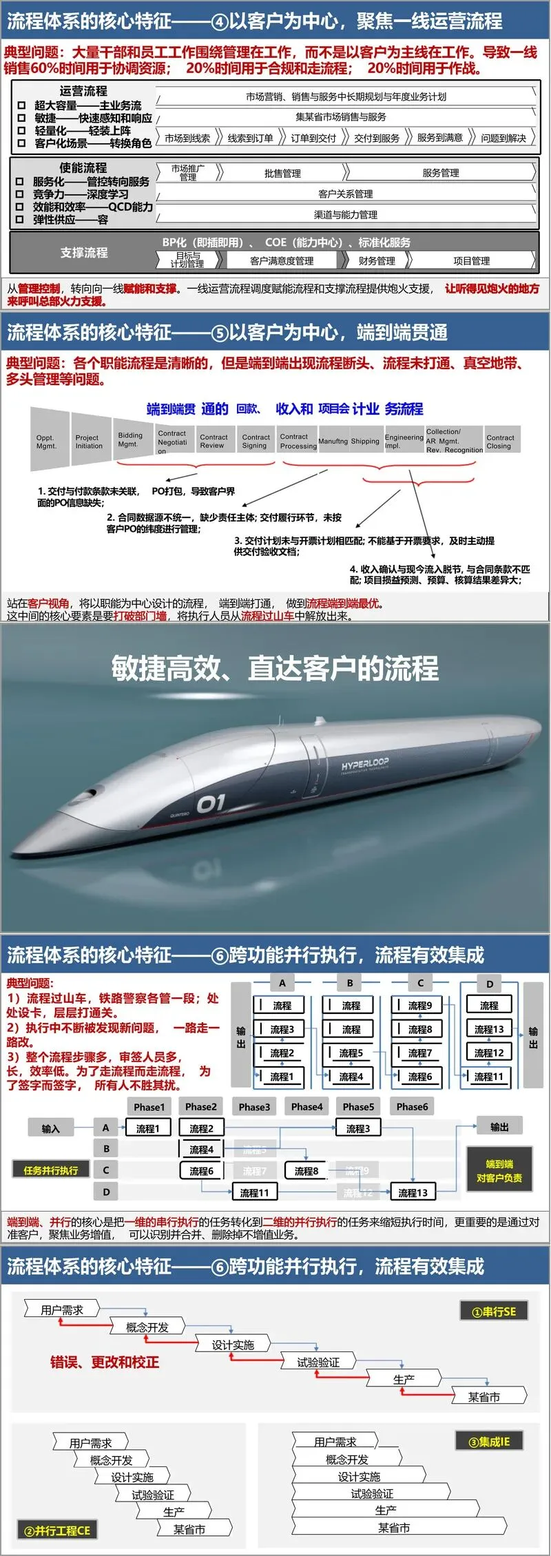 打造敏捷高效的流程,是华为流程体系建设的核心追求。文件深刻剖析了何为“以客户为中心”的流程,批判了“唯控制论”、“唯专业论”和“唯流程论”等错误倾向。一个优秀的流程应具备明确的要素,华为通过经典的SIPOC模型和5W2H分析法(Why, What, How, Who, When, How Much)来定义流程,确保流程对准客户价值、阶段明晰、决策点清晰,并配备具体的标准、规则、方法和工具。流程再造遵循七大原则,核心是从以“分工为中心”转向以“流程为中心”,从“串行工作”转向“并行工作”,从而大幅缩短周期,减少返工。