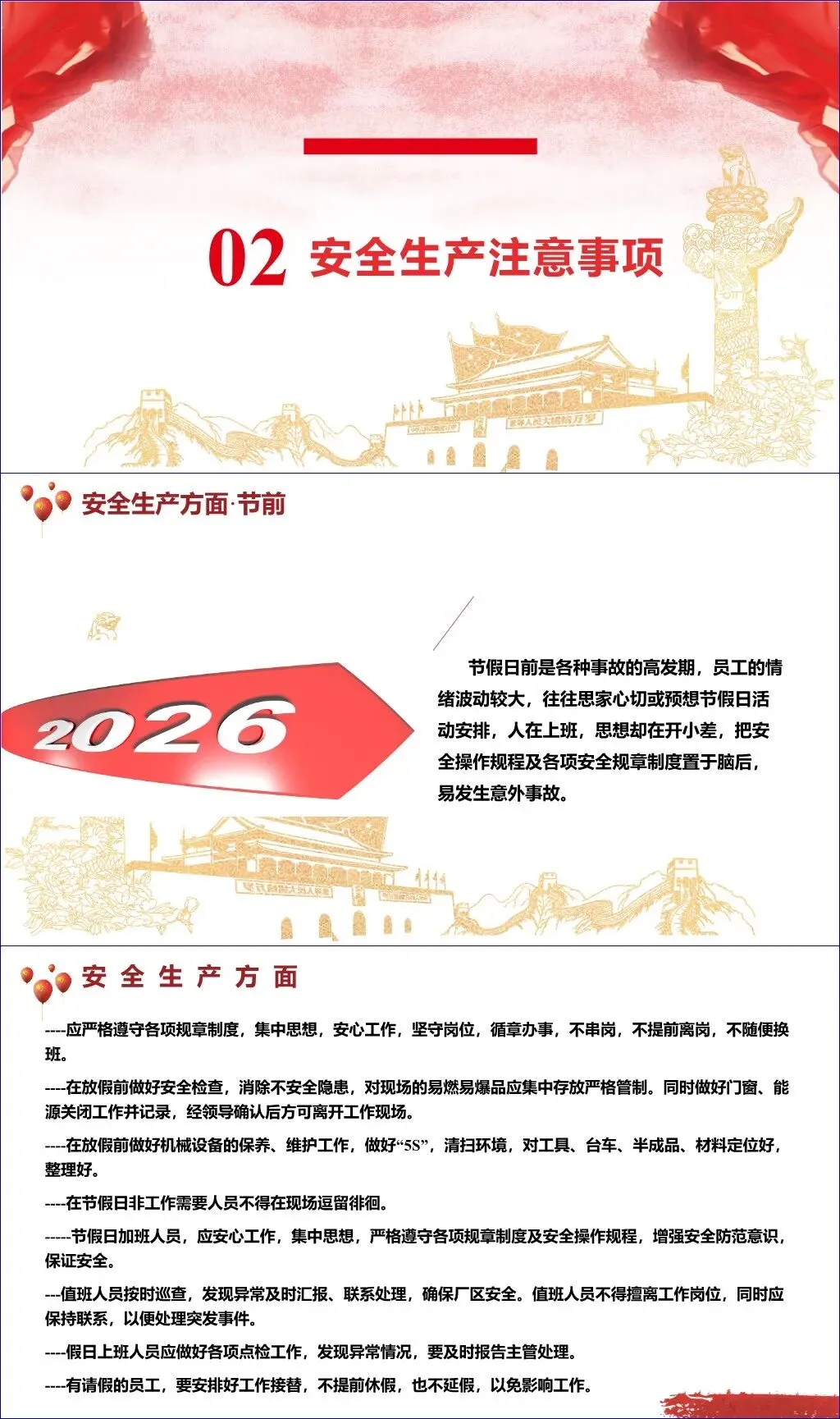 节前员工易分心,需加强纪律:不串岗、不提前离岗、遵守规程。