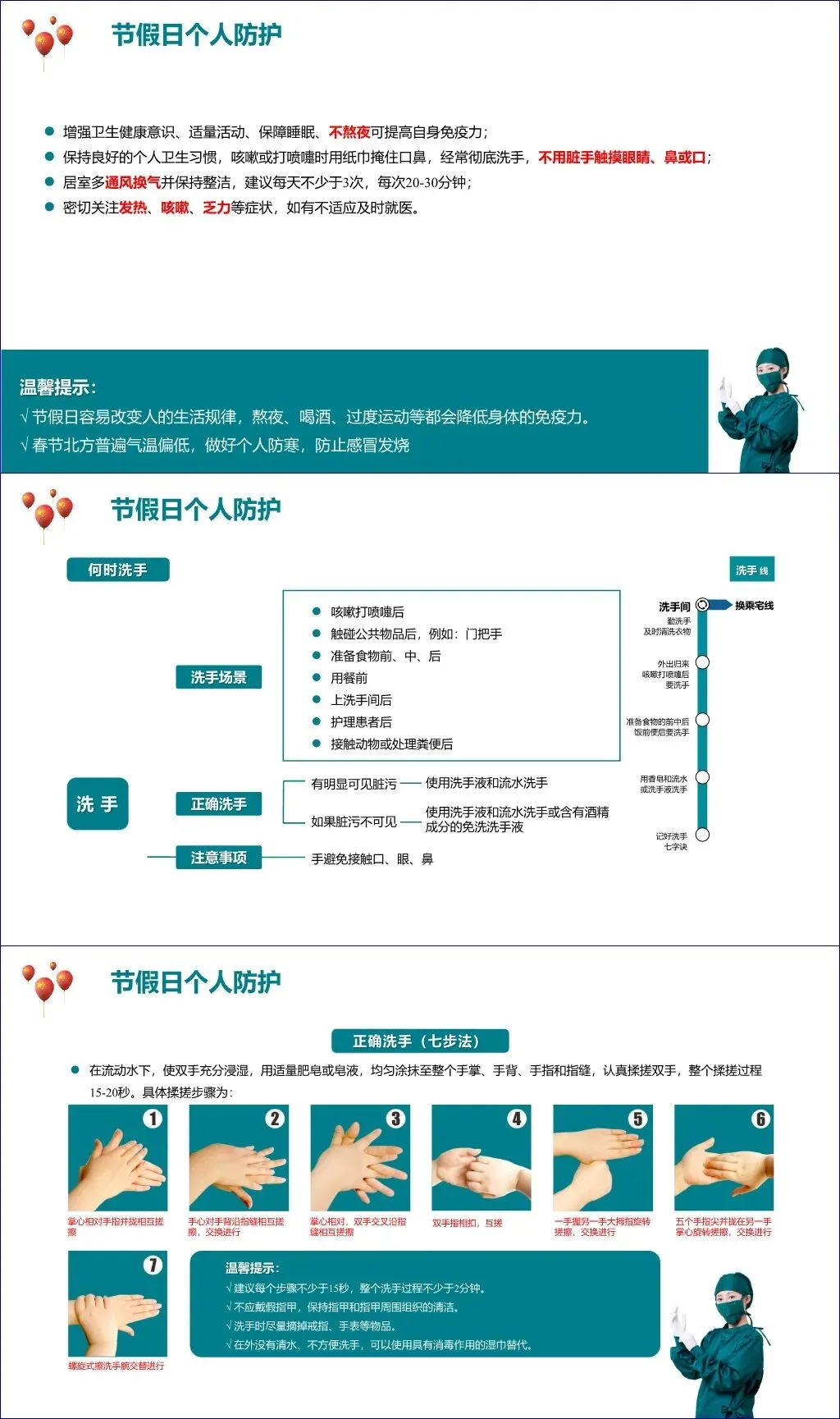 防护建议:规律作息、防寒保暖、勤洗手(七步法)、戴口罩(正确佩戴)、居室通风。
