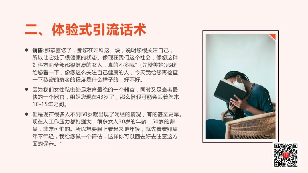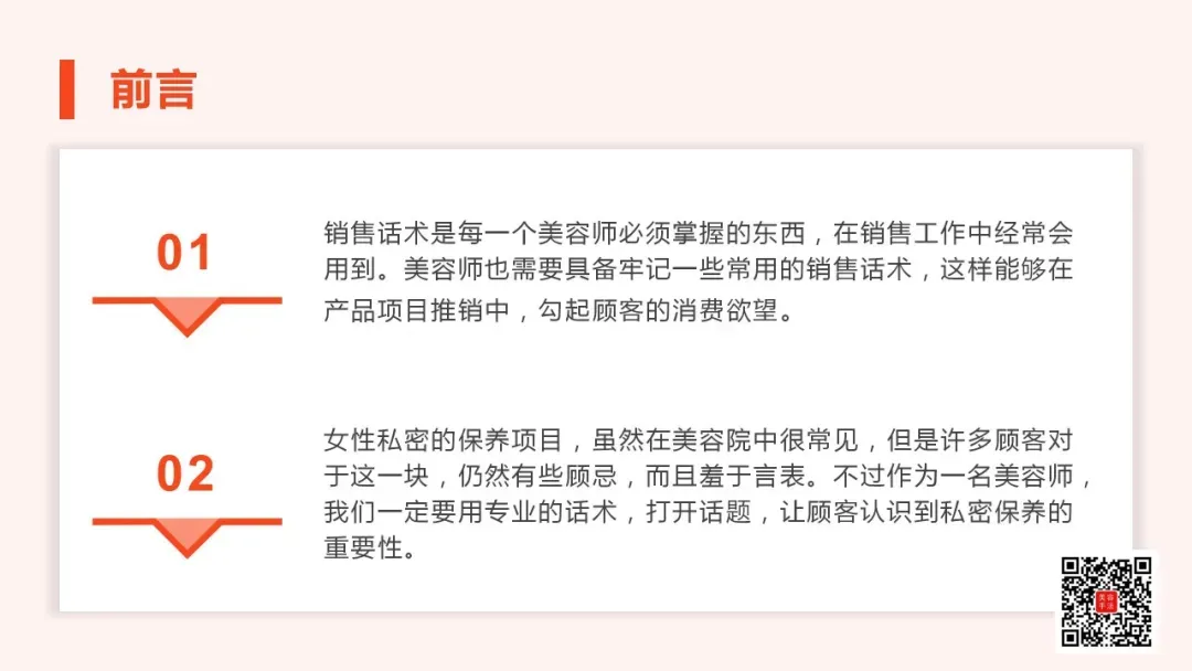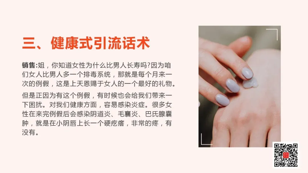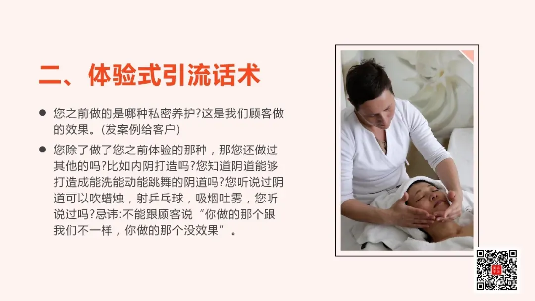 女性私密的保养项目,虽然在美容院中很常见,但是许多顾客对于这一块,仍然有些顾忌,而且羞于言表。不过作为一名美容师,我们一定要用专业的话术,打开话题,让顾客认识到私密保养的重要性。