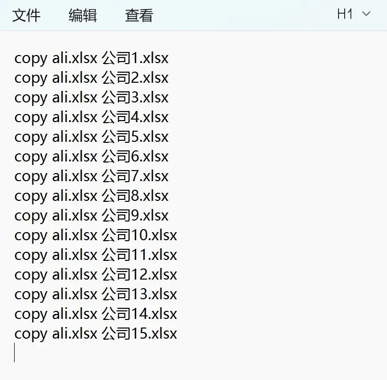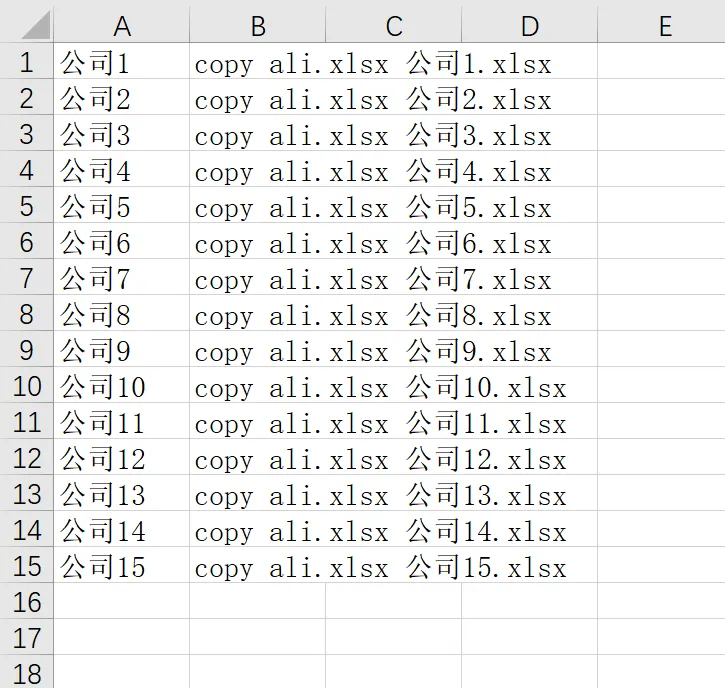 如="copy ali.xlsx"&" "&A1&".xlsx"。