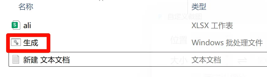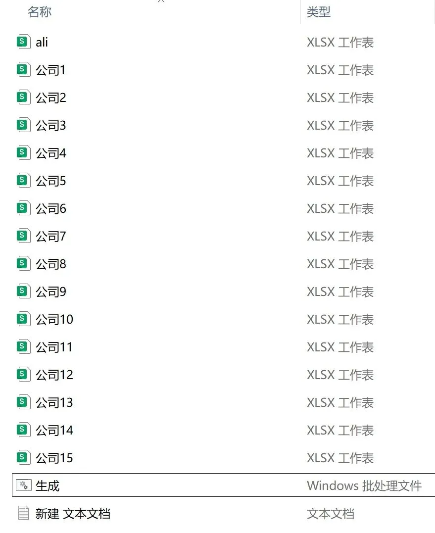 Step4.文件夹内出现名称为“生成”的批处理文件,双击该文件,即可在文件夹内批量生成excel文件。