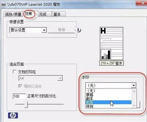 注:如果找不到下面的选项,说明你电脑连接的打印机不支持添加水印