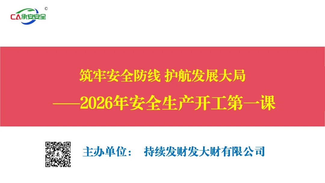专为企业定制《安全生产开工第一课》PPT,涵盖安全形势责任、生产工艺风险、设备操作规范、应急处置演练四大核心模块,贴合行业场景,融入最新法规、真实事故警示与实用检查清单,拿来即用超省心!