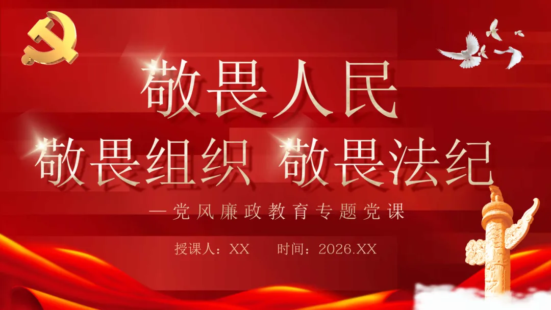 >PPT+讲稿:敬畏人民、敬畏组织、敬畏法纪--党员干部党风廉政教育专题党课(8900字+38页+2个视频)