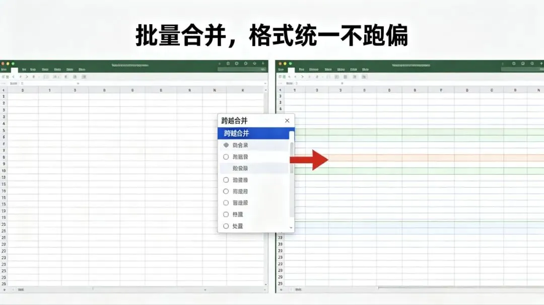 做报表、做汇总、做表头,合并单元格是家常便饭。一块一块点合并、调格式,一张表能折腾半小时。