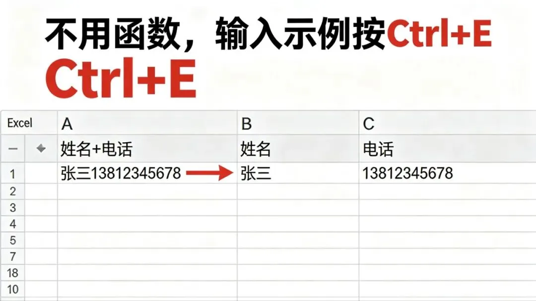 在旁边单元格,手动输入第一个正确结果,然后按下 Ctrl+E。Excel会自动识别规律,整列批量提取、拆分、拼接,一步到位。