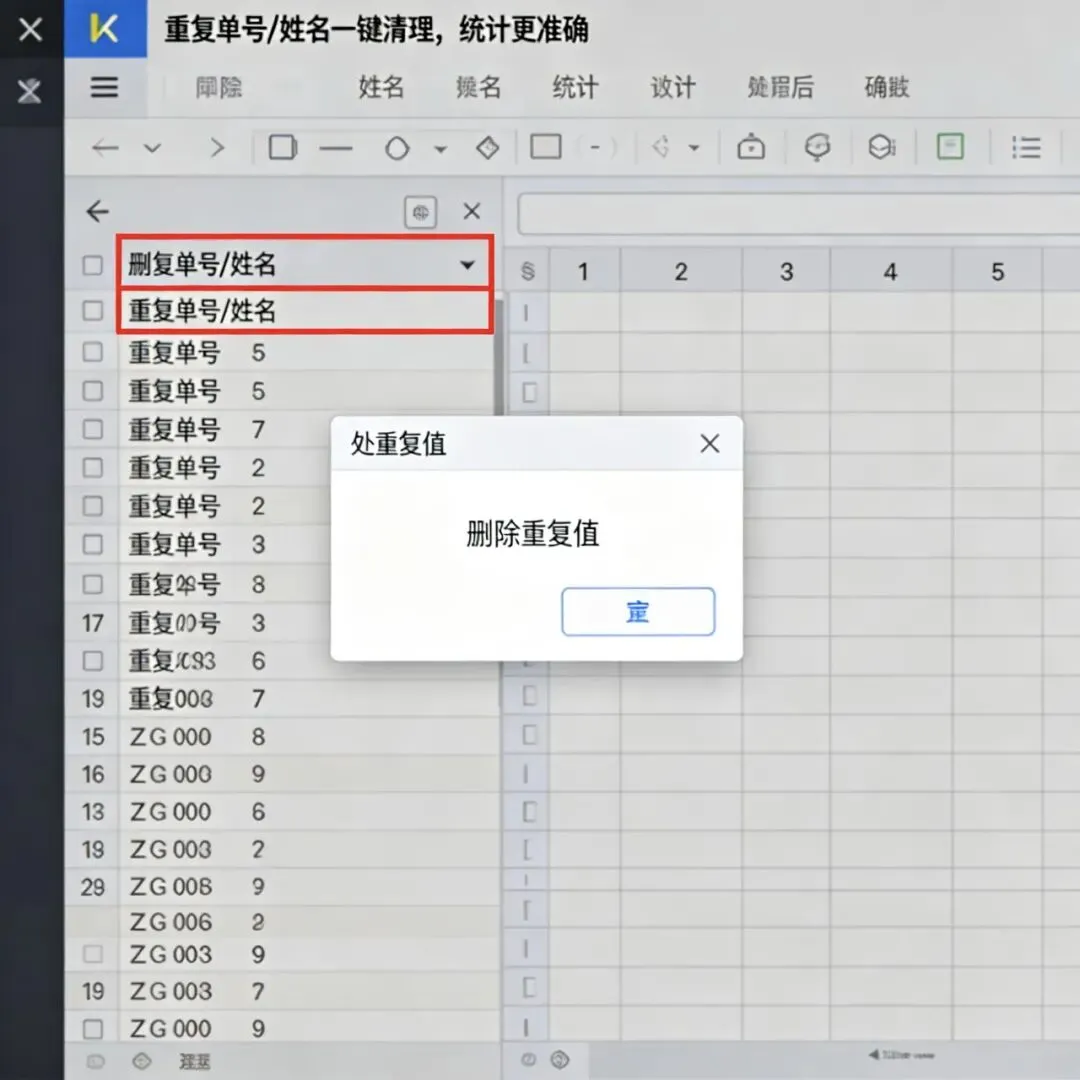 数据多了,难免重复录入:重复单号、重复姓名、重复记录,统计不准、还容易出错。
