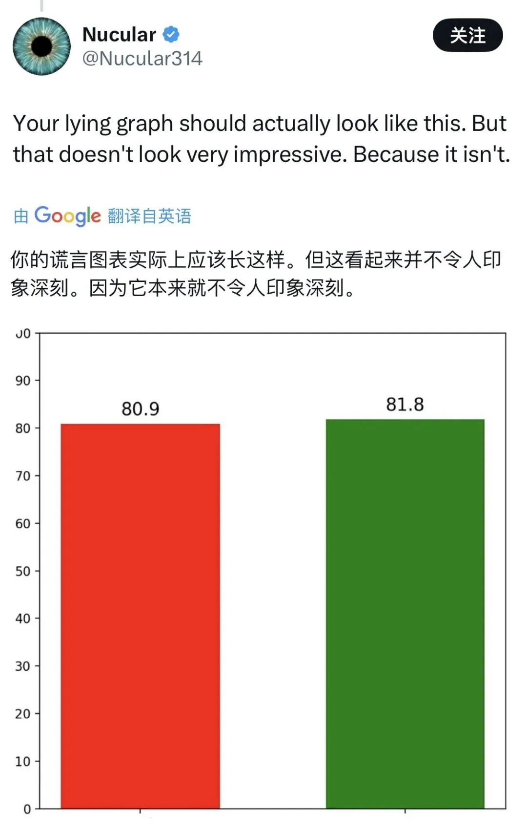 好家伙,这哥们的纵坐标是从80.7开始的。
