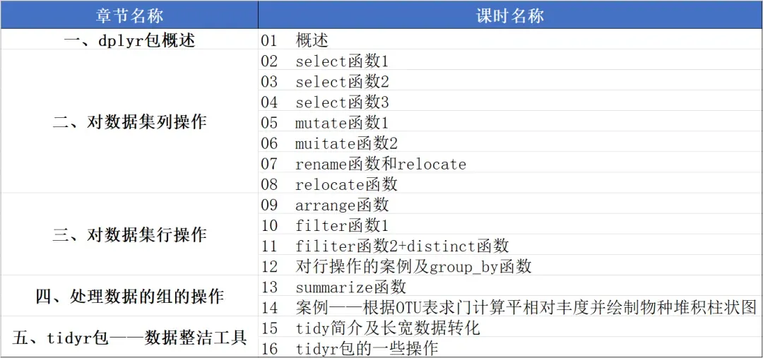别急!平台全新上线的精品R语言课程来救场——《R语言dplyr包助力数据处理》!干货课时直击数据处理核心,从基础语法到高效实战,手把手教你用dplyr包玩转数据处理,让数据处理效率翻倍,轻松摆脱繁琐操作!