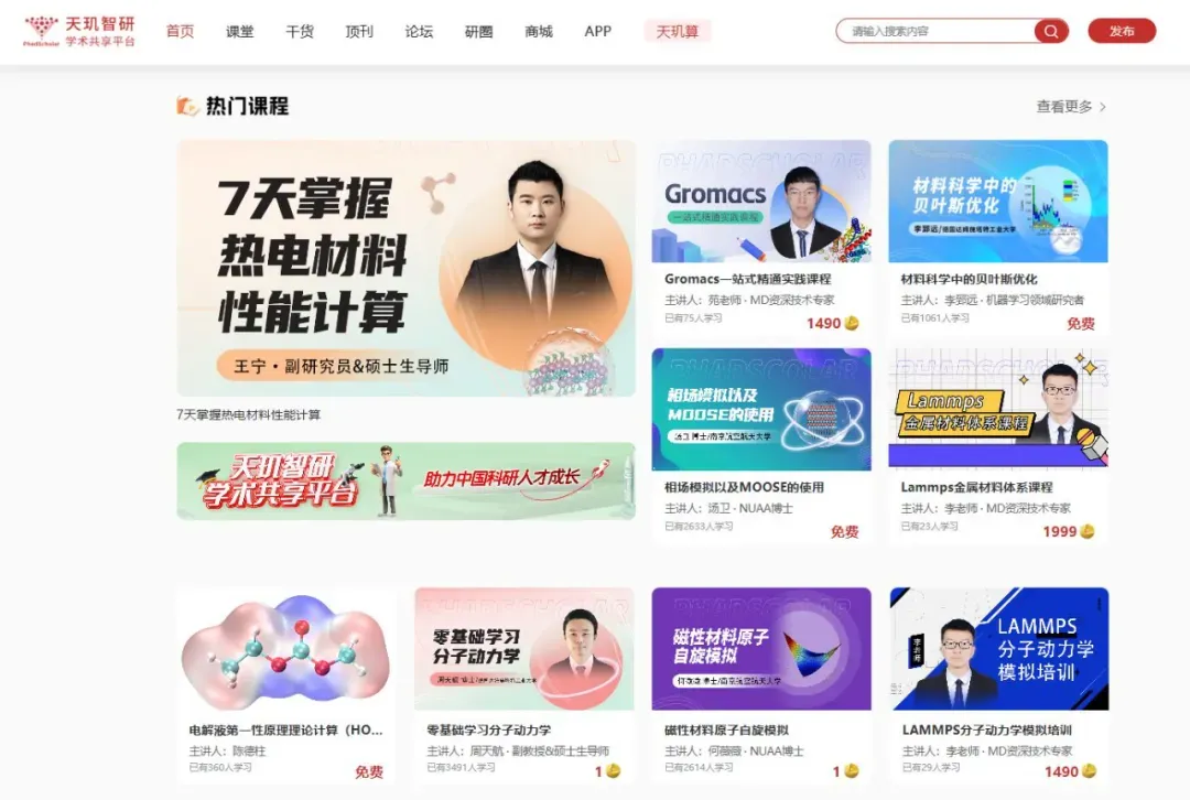 【天玑智研】还有海量涵盖模拟计算、科研绘图、实验检测等领域的系统课程,助力全方位提升科研能力!