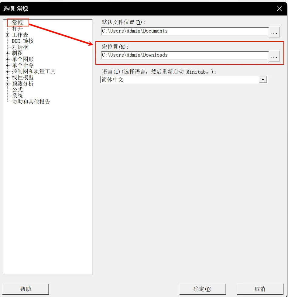 选择文件 > 选项 > 常规。在宏位置下