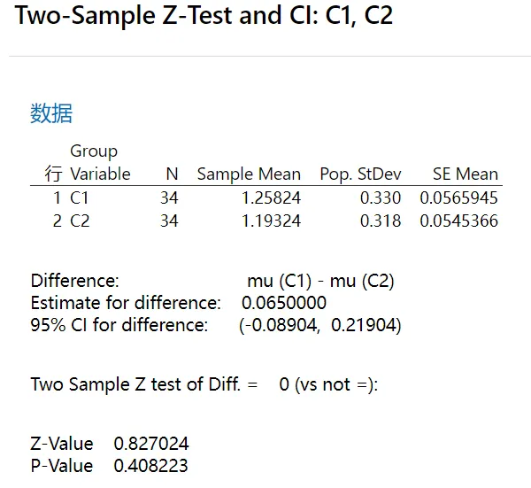 运行这个命令,%TWOZTEST C1 C2 0.33 0.318 其中0.33与0.318为样本标准差。