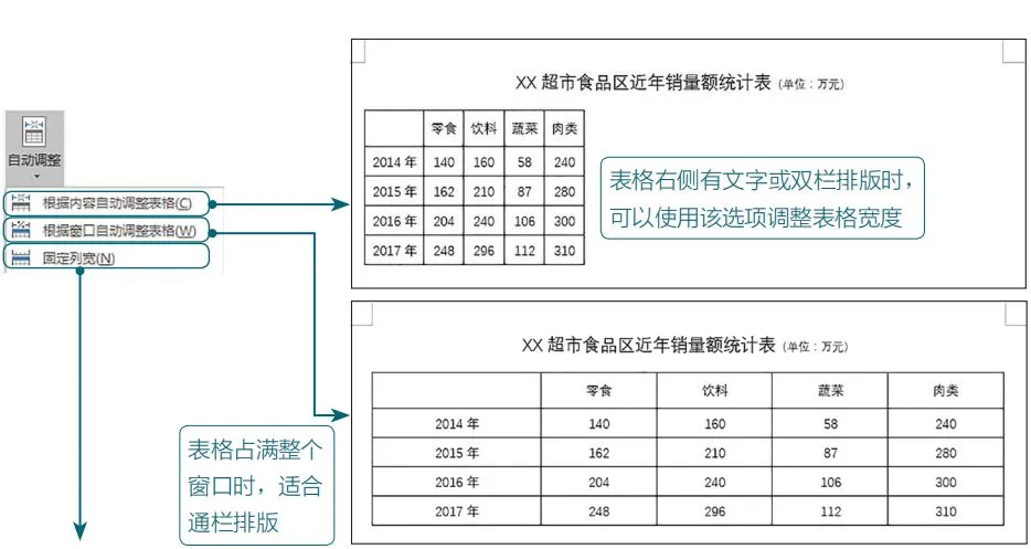 (2)列宽。根据表格内容多少设置列宽,内容多少差别不大时,可均匀分配列宽。