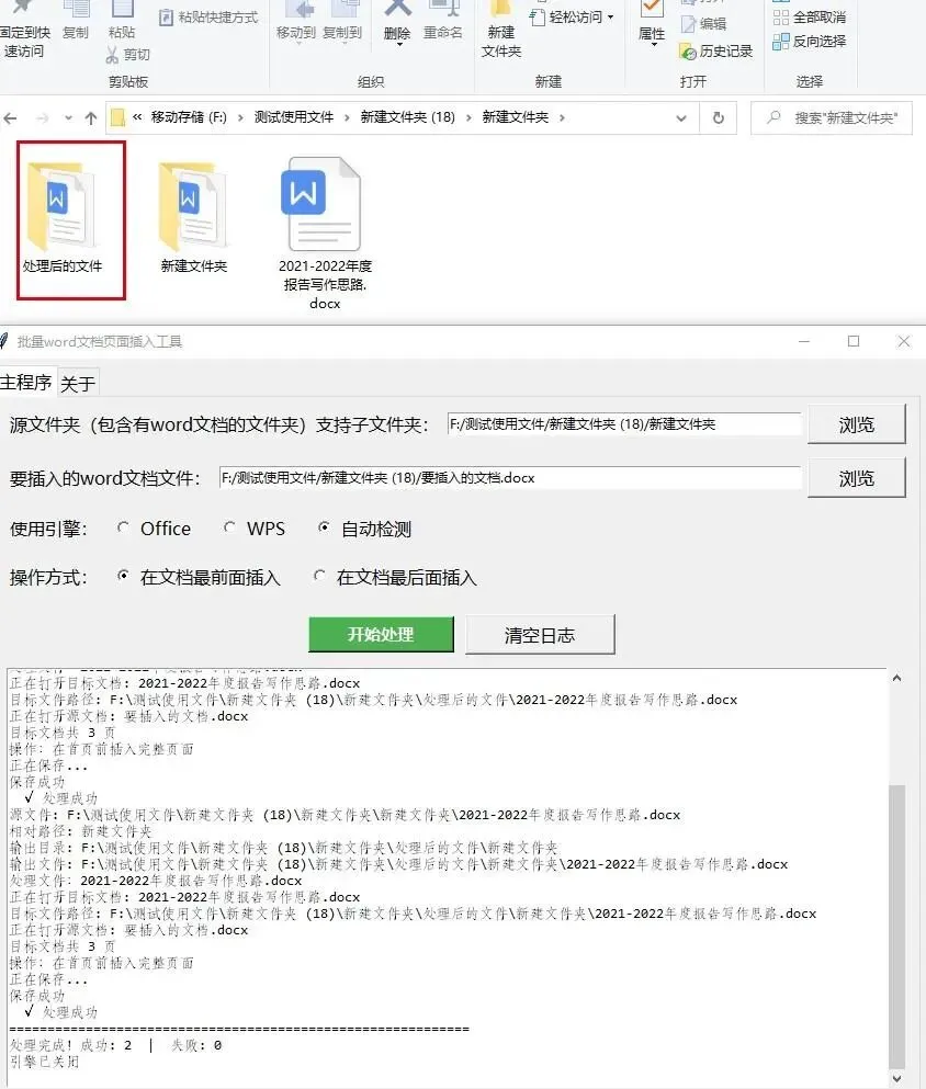 处理完成后,在源文件夹中会生成一个名为”处理后的文件”的文件夹,所有处理后的文档都保存在该文件夹中。