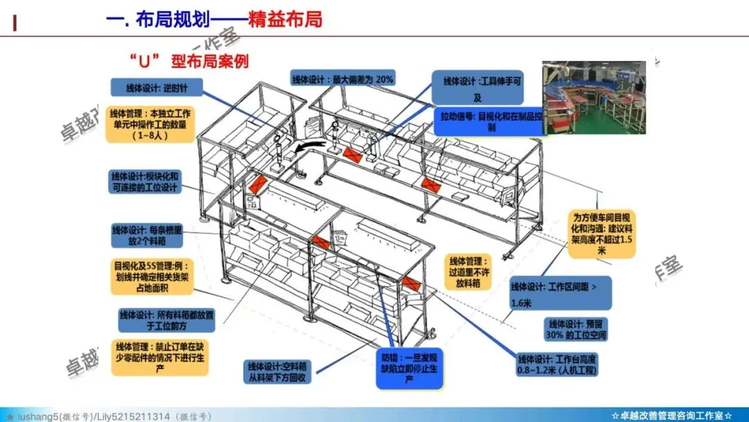 3. U型布局为主:这是精益布局的典型形态。其优势包括: