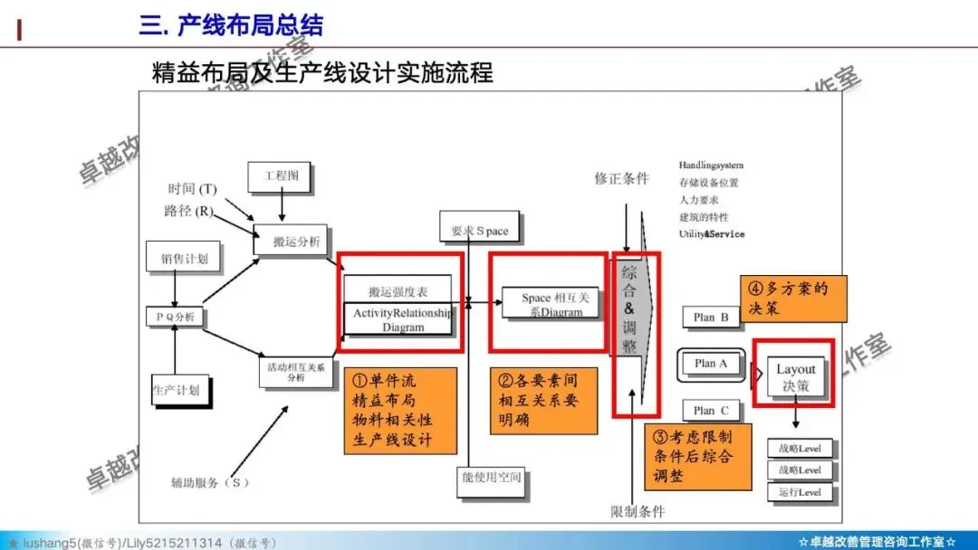 4、物流与信息流先行:“先有流,再有布”。先规划理想的物料和信息流动方式,再据此安排设备位置。