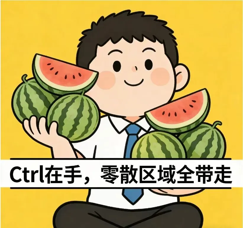 按住Ctrl键,依次点击或拖选需要的单元格/区域,松开Ctrl即可选中多个不连续区域,复制、格式设置都能一次性操作。以上这些选区小技巧,覆盖了日常办公所有场景,从基础操作到大数据量精准选取,练熟之后再也不用在选区上浪费时间,效率直接翻倍!赶紧打开Excel实操一遍,把快捷键记在心里,下次处理数据再也不慌啦~