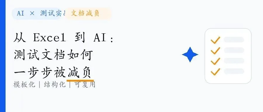 测试文档写不动,通常不是你不勤快,而是“文档没有被设计成协作资产”。我的做法是把文档拆成几个固定结构:哪些必须写、写到什么粒度、哪些字段必须可追溯。AI 只做整理和补缺口,不替你定口径。