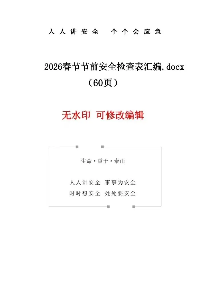 小安整理近50篇2026年春节节前安全PPT及文档!供大家参考借鉴!减少您大费周折找资料的时间!