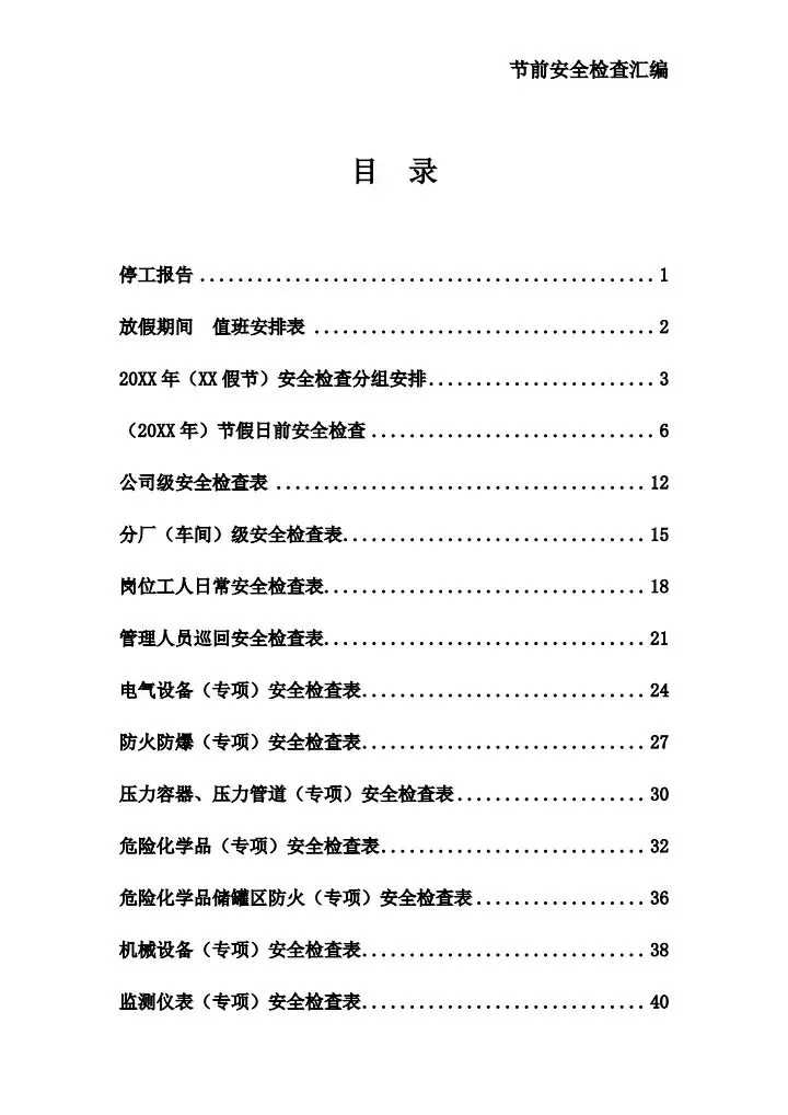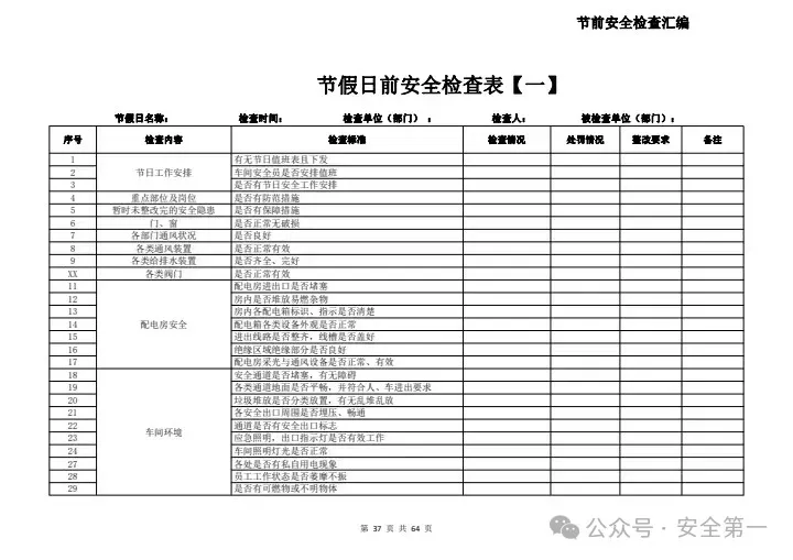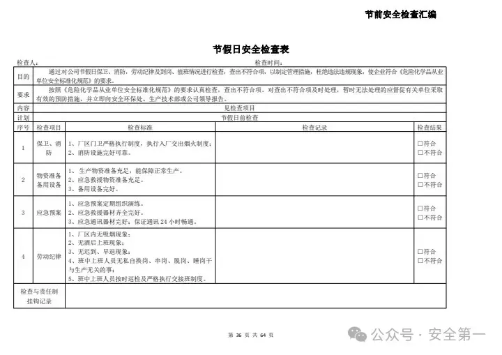节假日前安全检查表四
