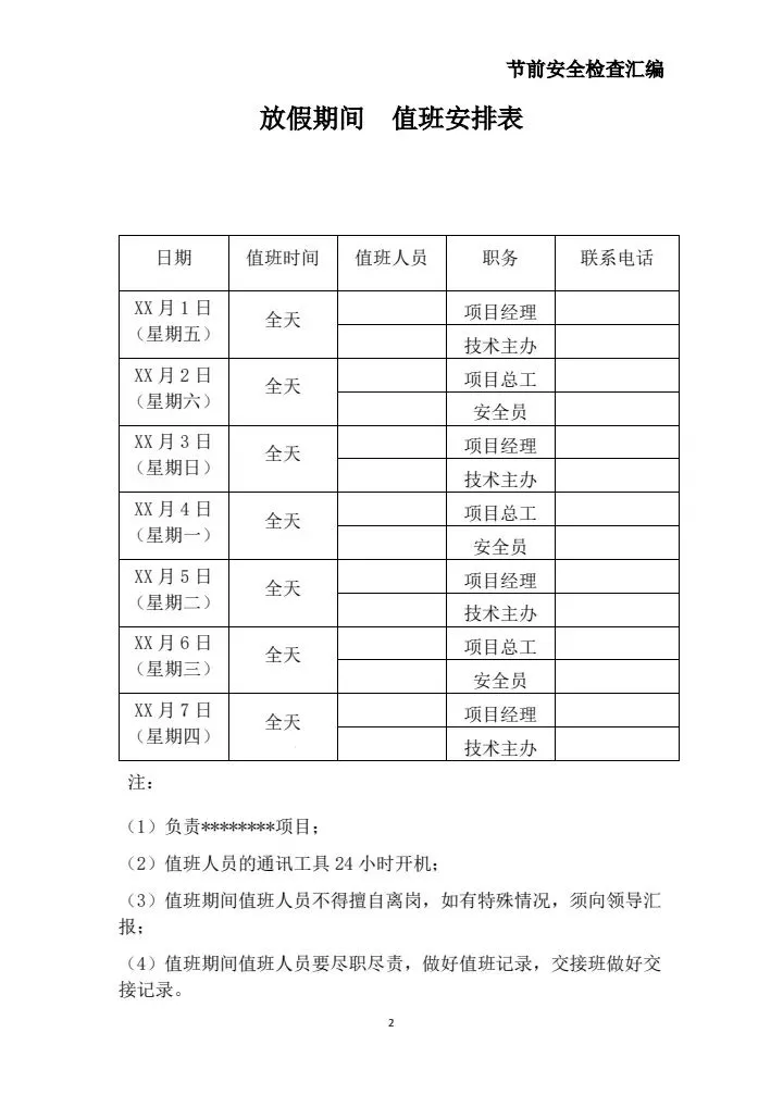 2026年春节放假期间值班安排表