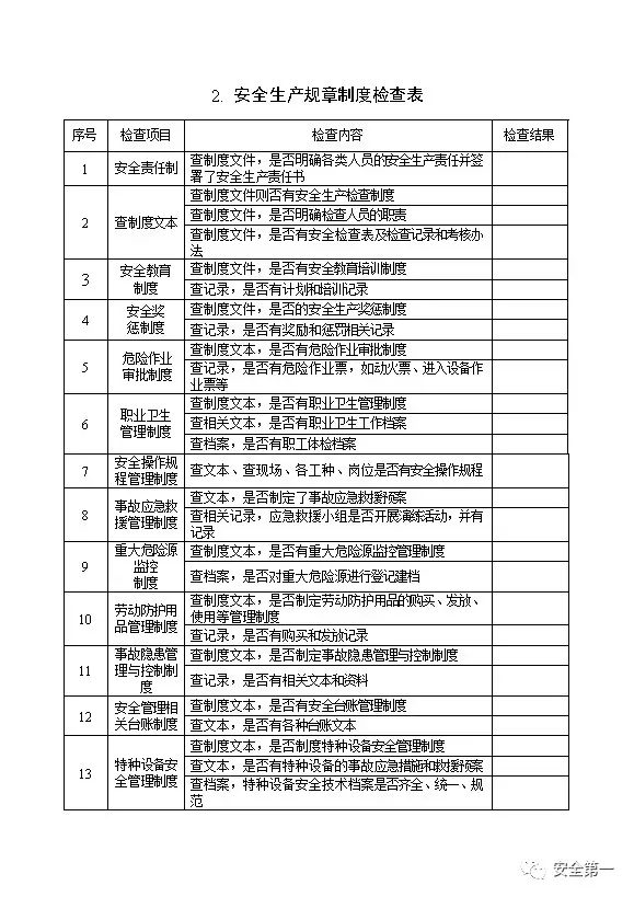 节假日前安全检查表十二