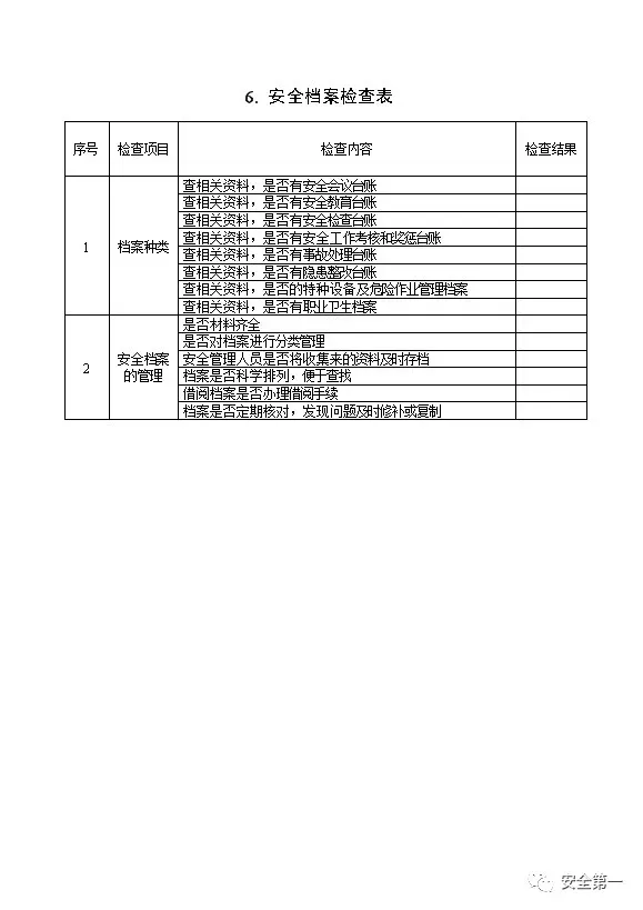 节假日前安全检查表六