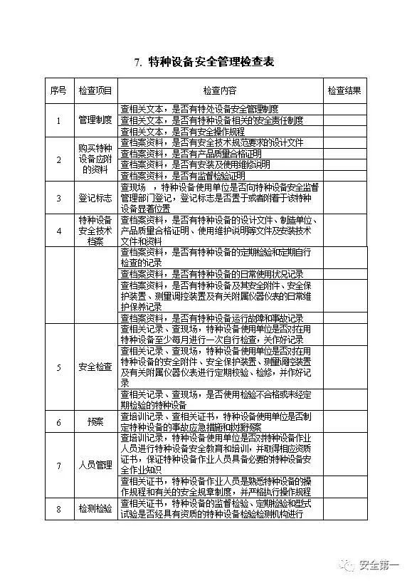 节假日前安全检查表八