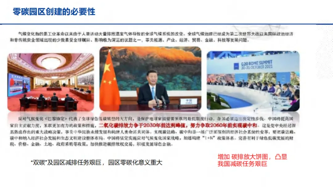 气候变化已成为全球共同面临的严峻挑战,中国提出“二氧化碳排放力争于2030年前达到峰值,努力争取2060年前实现碳中和”的战略目标,而园区作为工业用能和碳排放的集中区域,承担着关键减排责任。