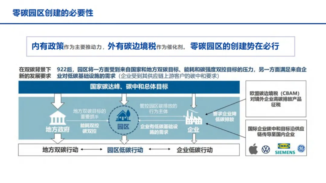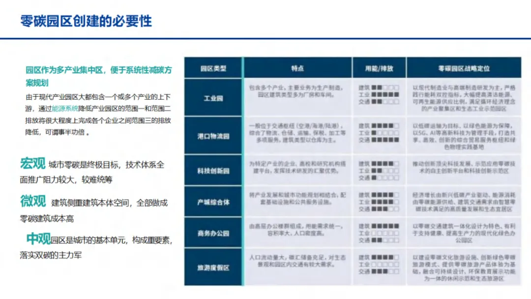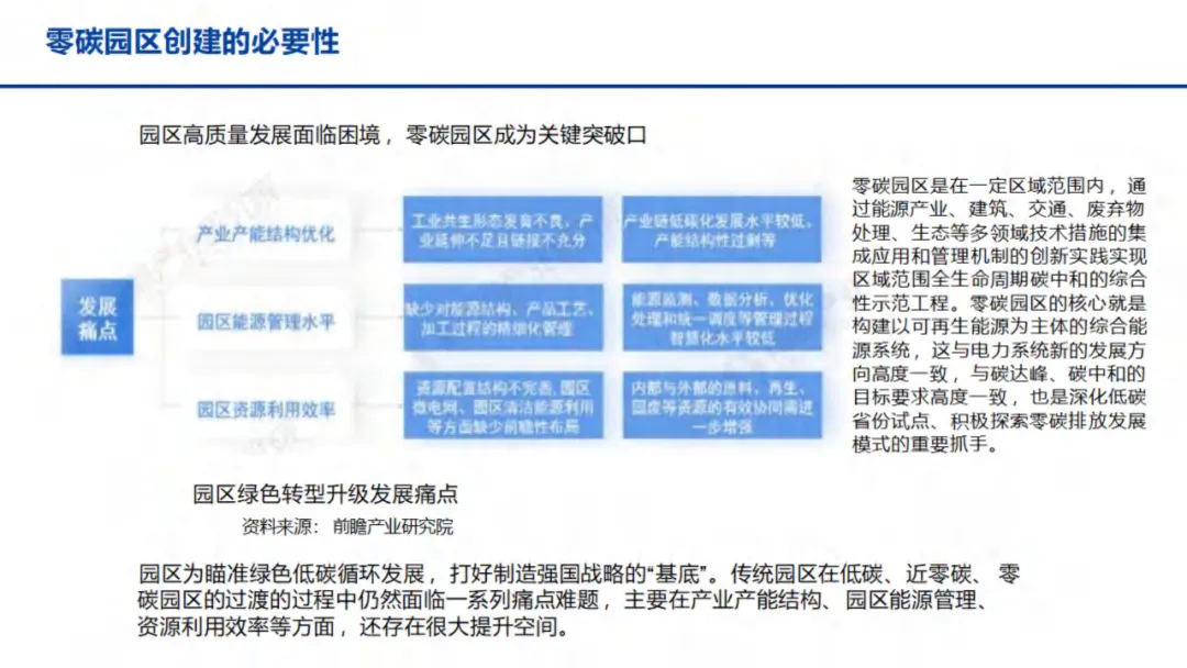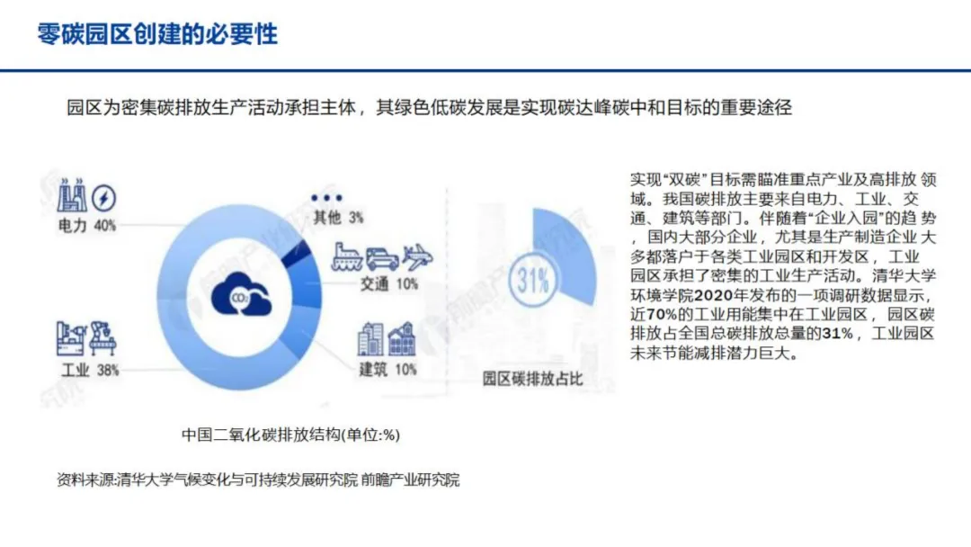 清华大学环境学院2020年调研显示,近70%的工业用能集中在工业园区,园区碳排放占全国总碳排放总量的31%,是实现“双碳”目标的重要突破口。同时,政策层面持续发力,《2030年前碳达峰行动方案的通知》明确提出打造节能低碳园区、建设绿色工业园区,并选择100个典型城市和园区开展碳达峰试点,为零碳园区发展提供了明确方向。