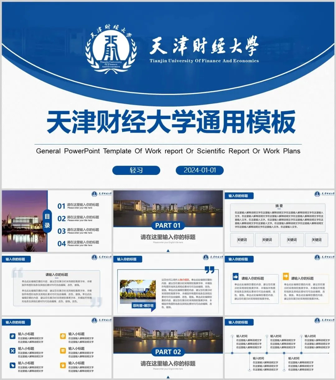 天津财经大学专属PPT模板来了,喜欢的同学不要错过啦!