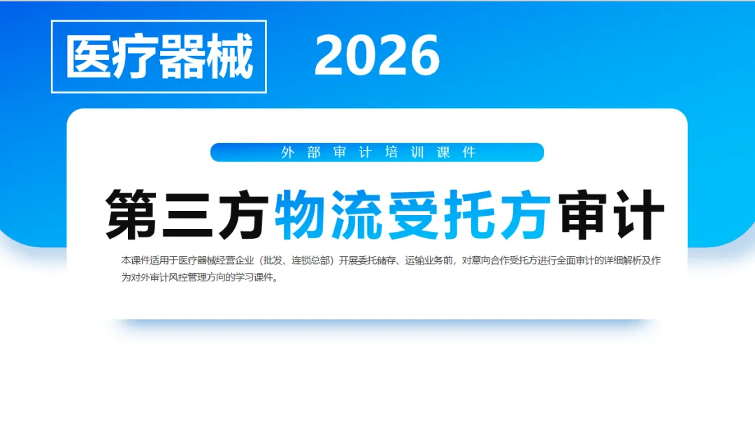 关于《医疗器械第三方物流受托方审计》学习课件和审计模板,知识付费!