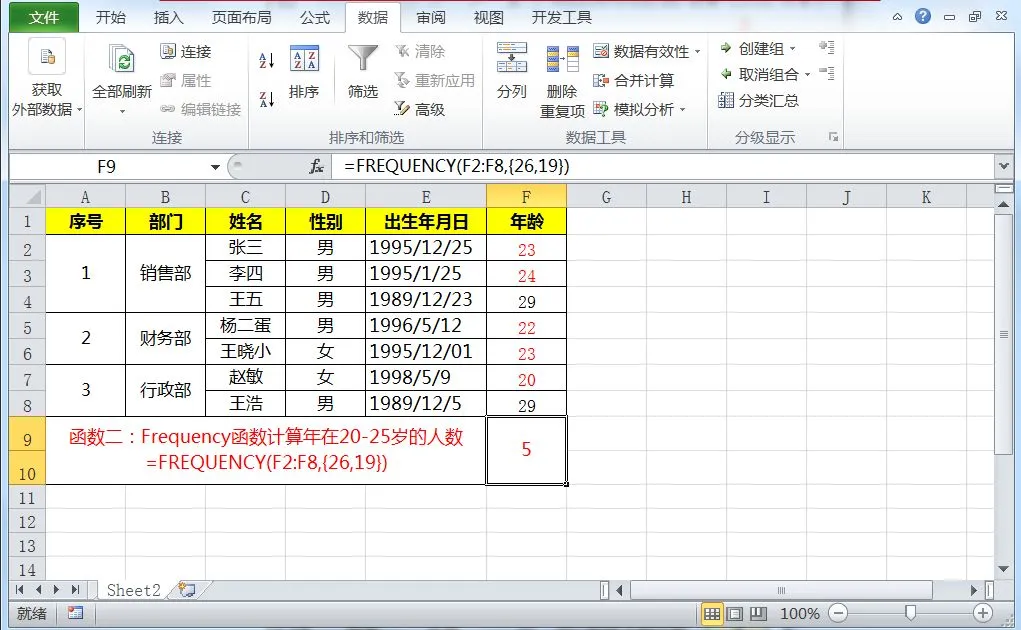 应用场景:快速统计年龄在20-25岁之间的员工人数。