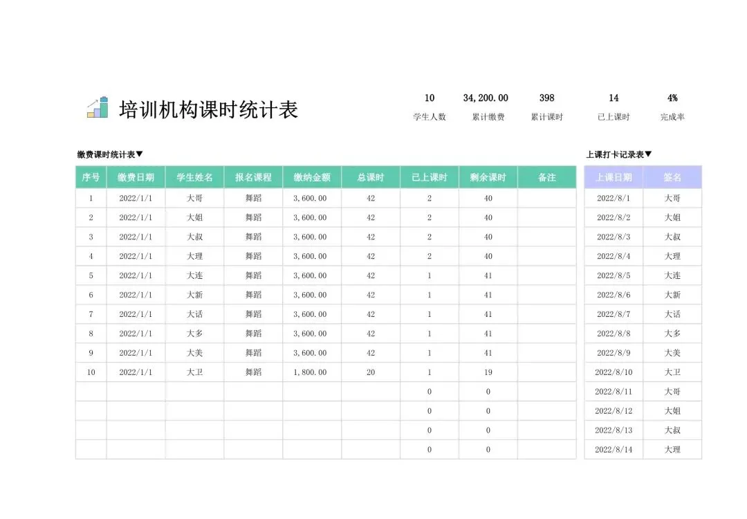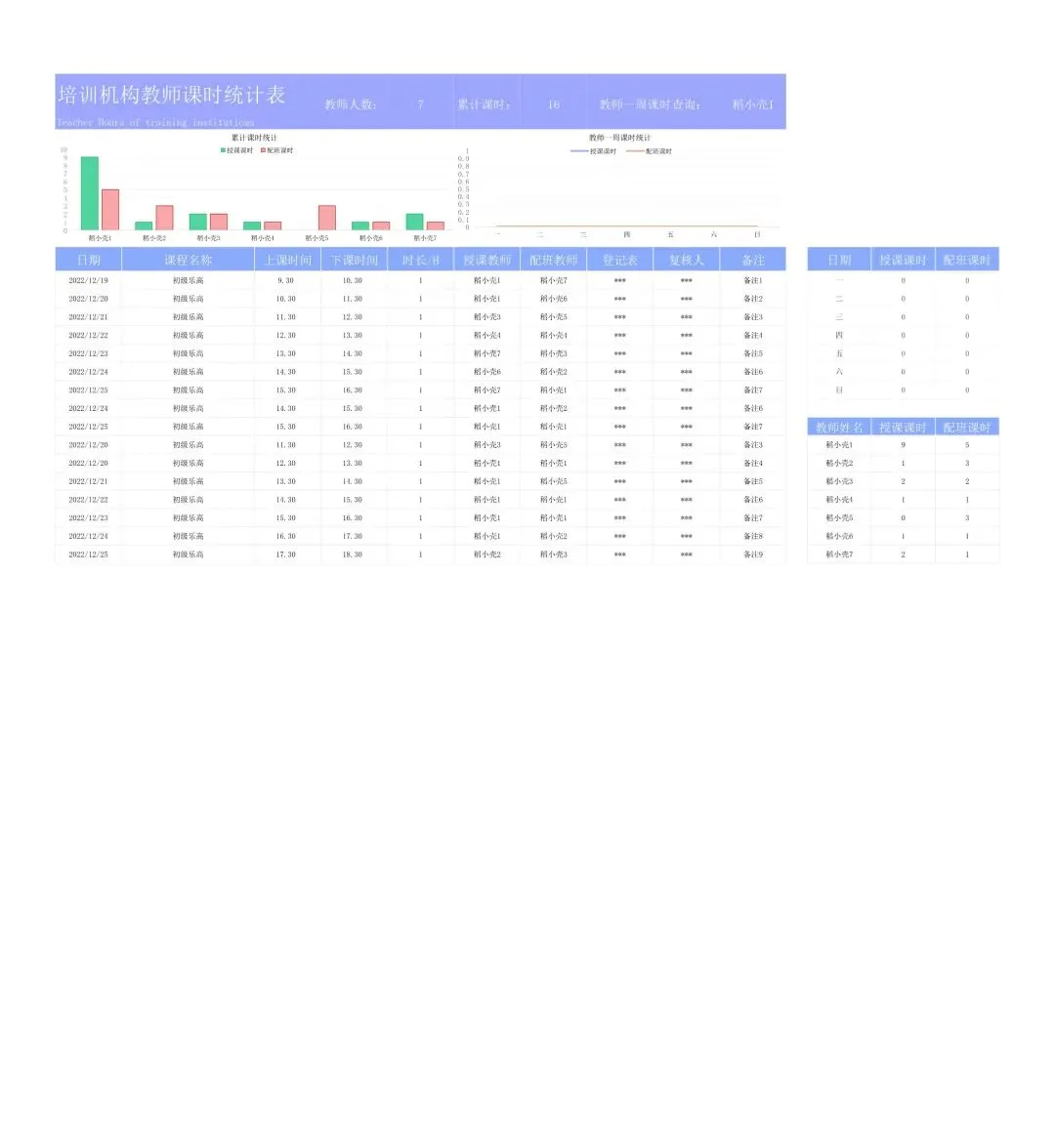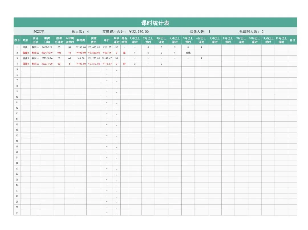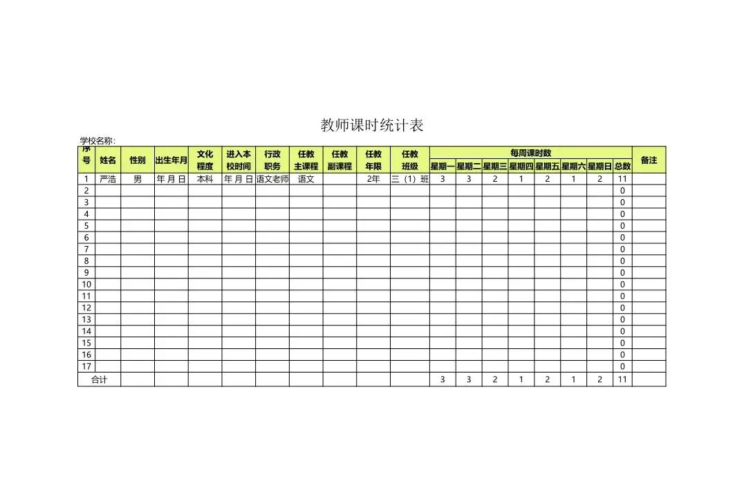 课时统计表