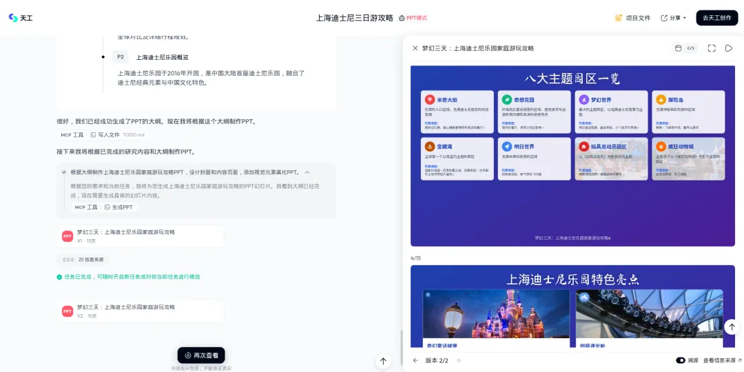 更难得的是,在大家纷纷收紧免费额度的当下,天工每天还赠送免费积分,大概够生成1-2份完整PPT。对于偶尔需要做PPT的人来说,这个免费额度完全够用。