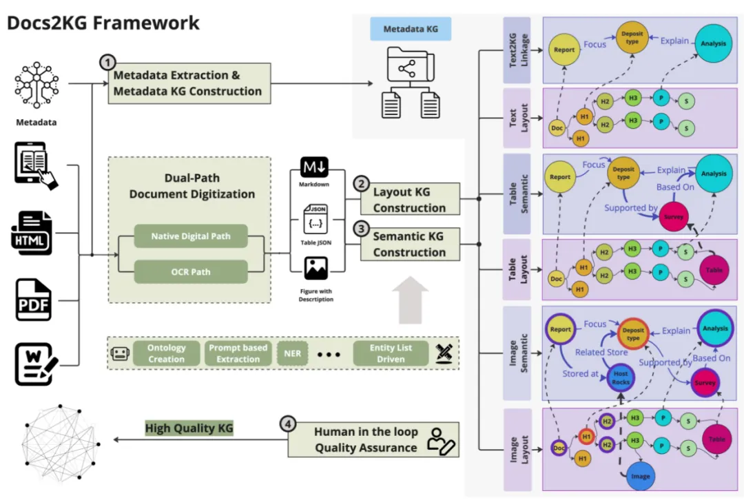 Docs2KG 能处理你日常能见到的绝大多数文档:它不只是简单读取文本,而是把文档拆成文本块、表格、图片、布局结构等多个部分,为后续构建多模态知识图谱打下基础。2. 通:双路径数据处理