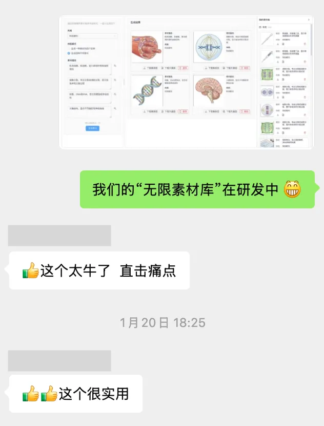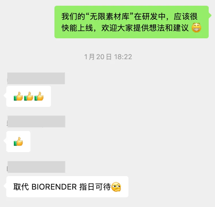 当然可以,按着这个思路,我们上线了“无限素材库”这个功能。来看看小伙伴们的期待与好评。