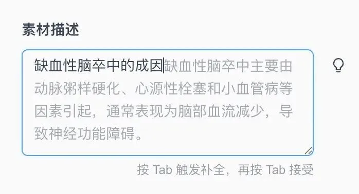 还没完呢。如果示范提示词库中并没有你需要的素材,你也可以自己写。写的时候呢,只需要按一下Tab键,系统就会根据前面的内容,自动帮你填充一段描述词,供你选择和修改。是不是很贴心呢?