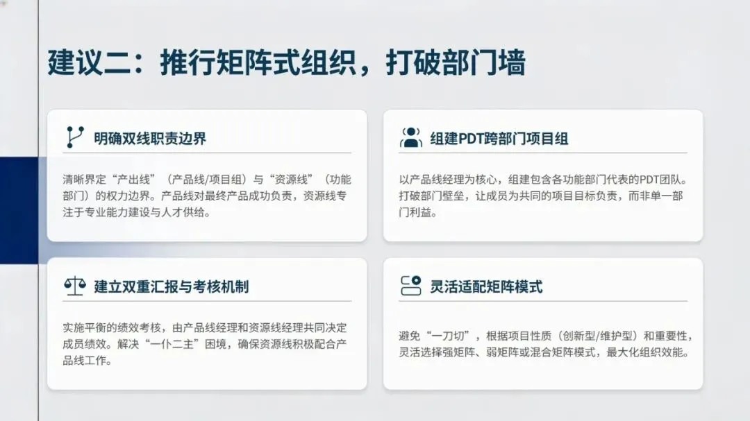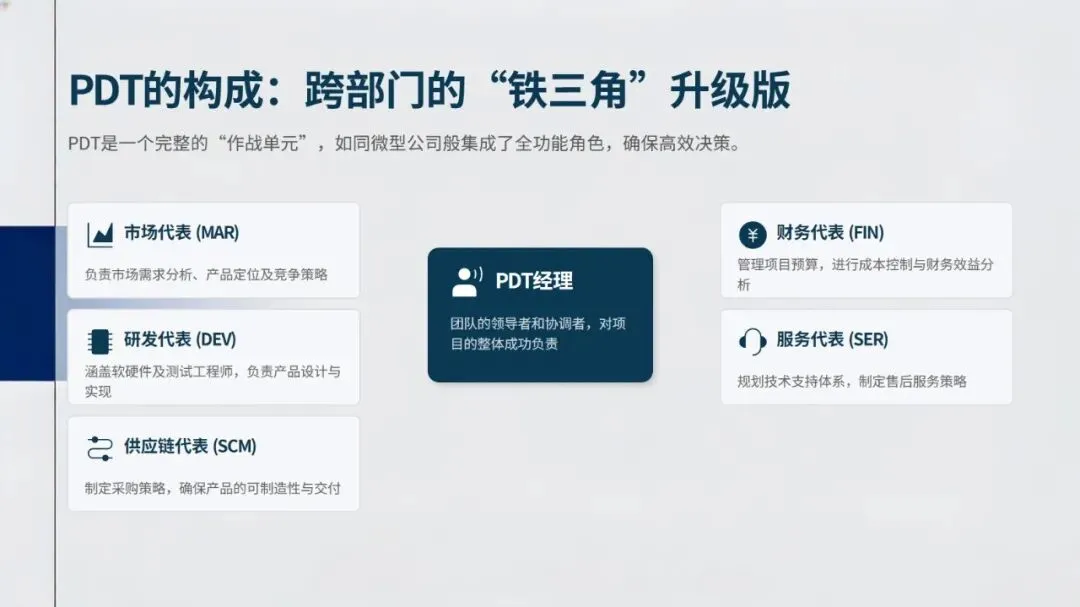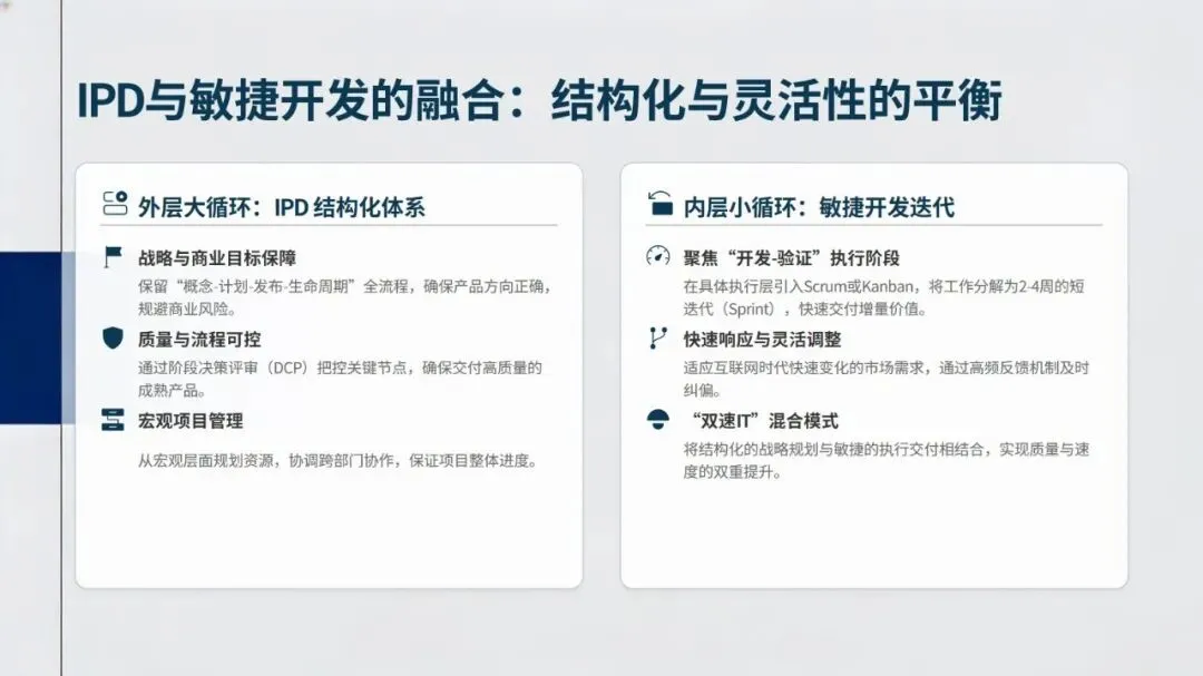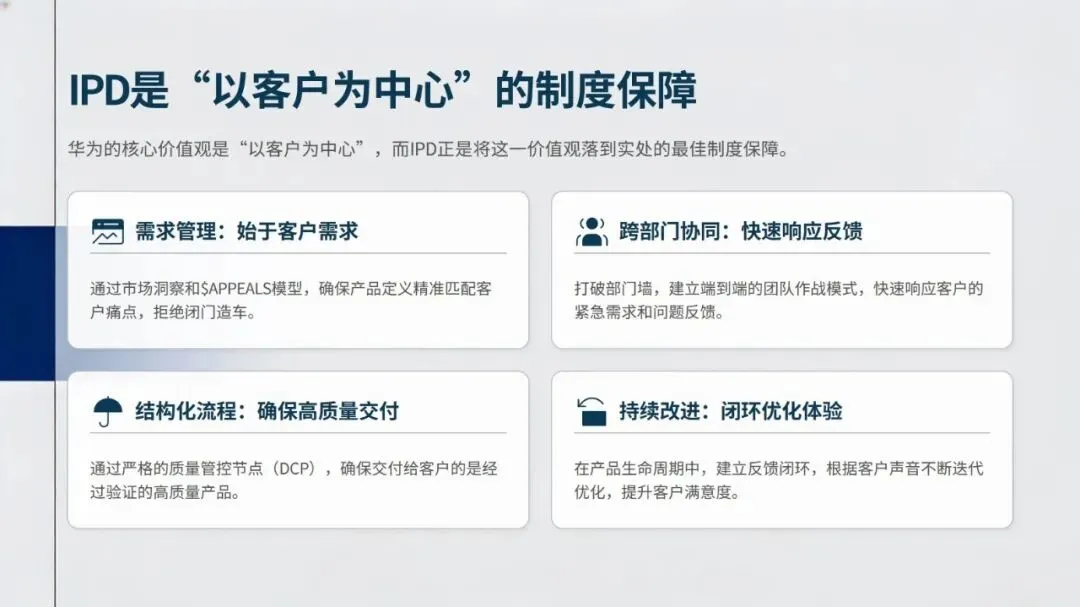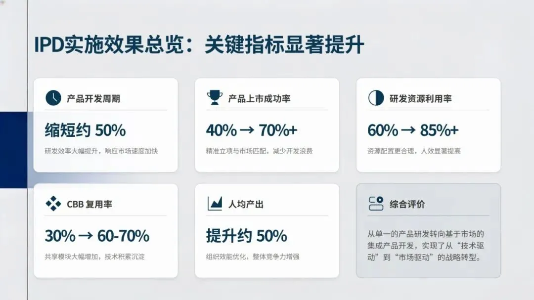 华为产品研发管理的核心竞争力源于集成产品开发(IPD)模式,这一体系并非单纯的流程规范,而是以市场与投资为导向的系统化经营哲学。IPD 通过技术开发、平台开发与产品开发的异步分离,构建七级产品货架与 CBB 共享模块体系,结合矩阵式组织架构与强矩阵资源配置,实现跨部门全流程协同。
