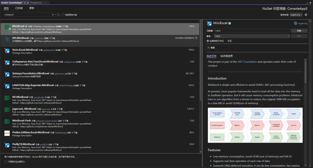 今天推荐一个更现代、更轻量的库:MiniExcel。它的特点就是:快、省内存、一行代码转实体。